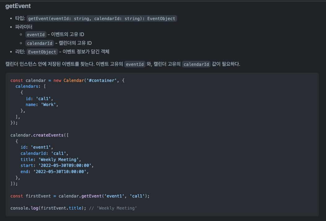 이 메서드에서 나는 id, calendarId가 필요하다는 사실을 알게되었고, 조금만 더하면 기능이 완성된다는 생각에 기뻤다.