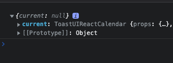 ref.current은 null 이지만 lazy initialization이 되어 current가 ToastUIReactCalendar 인스턴스를 늦게 참조해온다는 사실을 알게되었다.