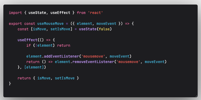 우선 호버이벤트와 무브이벤트를 사용할수있는 훅스를 제작하였다. 이제 이 훅스를 사용하기 위해 자료를 조사했다.