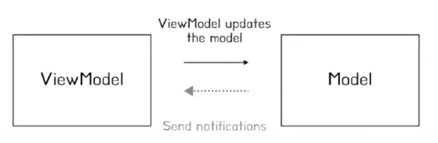 viewModel은 view에서 Send Notification을 날리면 Model에게 ViewModel Updates the Model 라고 요청을 날립니다.